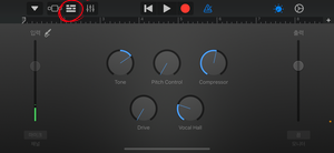 (1)"GarageBand"를 실행 및 "+"를 눌러(좌측), 나오는 화면에서 "마이크"모양을 누릅니다.